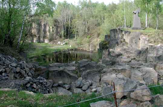 Am Silbersee liegt die älteste Steingewinnungsstätte Europas. Dabei handelt es sich um einen Steinbruch zur Mühlsteinherstellung aus der Römerzeit. Als Arbeitsspuren wurden römerzeitliche Keiltaschenspaltungen gefunden, wie sie spätestens ab dem 2. Jhdt. n.Chr. üblich waren. Mit Spitzeisen und Fäustel legte man einzelne Keiltaschen in Reihe an. In die Keiltaschen wurden eiserne Keile gesetzt und so lange eingetrieben bis die Basaltlava riss. Die abgekeilten Säulenabschnitte hatten die ideale Ausgangsform für die Herstellung von Hand- mühlen, die teilweise in den Brüchen fertiggestellt wurden. Der letzte Stein- abbau am Silbersee wurde in den fünfziger Jahren des 20. Jhdt. durchgeführt. Die Bruchsohle erreichte mit der Zeit den Grundwasserspiegel, der mit Hilfe einer Wasserhaltung abgesenkt wurde. Nach Auflassung des Bruches lief dieser voll und es entstand der Silbersee.