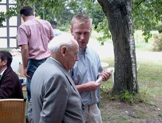 Mühlenbesitzer Volker Hilmer (re.) im Gespräch mit dem wendländischen Mühlenexperten und Mühlenbuchautor Friedrich Lange aus Schwiepke b./ Küsten.