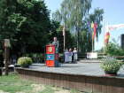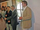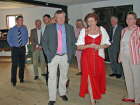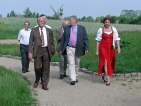Auf dem Dorfplatz des Mühlenmuseums und somit unmittelbar vor der Sanssouci-Mühle wurde der offizielle Festakt zunächst mit einigen Vorführungen der Gifhorner Trachtengruppe USK eingeleitet. Rosita Wrobel begrüßte an Stelle ihres verhinderten Vaters Horst Wrobel im Namen der Museumsleitung die zahlreichen geladenen Gäste und Museumsbesucher und bewertete die Mühlenstraßen-Präsentation als Auftakt für eine zukünftig kooperative Zusammenarbeit zwischen dem Mühlenmuseum und den Mühlenvereinen. In seiner Ansprache zur Eröffnung der Ausstellung berichtete Minister Ehlen über die Entwicklung des Projektes Mühlenstraße und die Bedeutung historischer Mühlen auch für den ländlichen Tourismus. Mühlen stellen noch heute Identifikationspunkte und Kommunikations-Stätten dar, zudem sind sie selbstverständlich prägende Bestandteile der (niedersächsischen) Kulturlandschaft. Für den weiteren Ausbau der Mühlenstraße durch die noch „offenen“ Regionen Niedersachsens sowie die finanzielle Förderung von Erhaltungs- und Restaurierungsmaßnahmen sicherte er Unterstützung zu. |