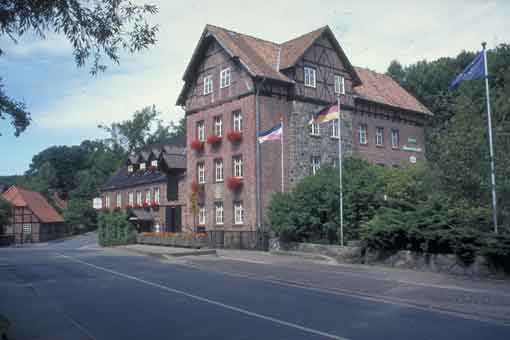 Heiligenthaler Mühle Wie eine Burg erhebt sich die Heiligenthaler Mühle am Ortseingang von Heiligenthal. Auf historischem Grund steht die Mühle tatsächlich, auch wenn das heutige Mühlengebäude erst 1950 erbaut wurde: Prämonstratenser Mönche hatten hier am Hasenburger Bach eine Mühle errichtet, nachdem sie an diesem Ort 1315 ein Kloster errichtet hatten. Nach der Reformation kam sie 1562 in den Besitz des Gutes Heiligenthal, zu dem sie bis 1865 gehörte. Im Gegensatz zu vielen Mühlen scheint die Mühle nach dem zweiten Weltkrieg eine wirtschaftliche Blüte erlebt zu haben. Der eindrucksvolle, im sog. “Heimatstil“ errichtete Neubau der Mühle deutet bereits darauf hin. Doch seit 1973 wurde der Mühlenhof allmählich in einen Gastronomiebetrieb umgewandelt. Zunächst wurde auf der gegenüberliegenden Straßenseite in der Fachwerkscheune am Mühlenteich eine Gaststätte eingerichtet. 1981 kam es schließlich zur Einstellung des Mahlbetriebes und zur Gaststätte am Mühlenteich kamen nun noch ein großer Festsaal und und eine Reihe von Hotelzimmern im Mühlengebäude. Seit 1998 dreht sich jedoch wieder die Turbine und erzeugt Strom. Besichtigung: Familie Zackariat, 04135 - 8225-0 |