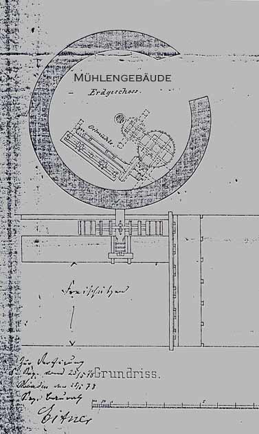 Bild 3: ÖLMÜHLENANLAGE IN DER WINDMÜHLE VON MÜHLENBESITZER MEYER ZU LAHDEBauzeichnung vom 28.11.1877 zur Verlagerung der Ölmühle in das Windmühlengebäude