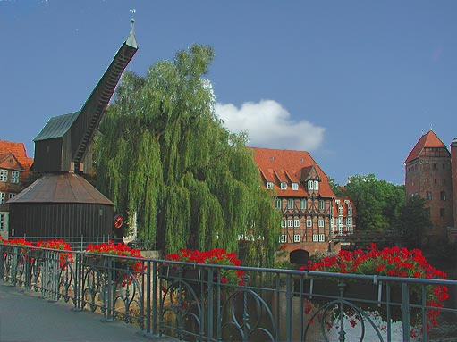 Die Lüner Mühle in Lüneburg Erste Erwähnung findet die Lüner Mühle im Jahre 1391. Ursprünglich zum Kloster Lüne gehörig,und daher Klostermühle genannt, kam sie in der Säkularisation von 1806 in den Besitz des Amtes Lüne, noch Anfang des vergangenen Jahrhunderts arbeitet sie für den Domänenhaushalt. - Wie gut die Gefälleverhältnisse oberhalb des Hafens tatsächlich gewesen sind, bezeugt die Tatsache, daß die Mühle als oberschlächtig mit drei Wasserrädern (um 1802) betrieben werden konnte. Im Jahre 1801 übernahm Johann Friedrich Meyer, späterer Pächter der Ratsmühle und Erbauer der Windmühle Bardowick, die Lüner Mühle und richtete 1808 einen zusätzlichen Ölschlag ein. Die ehemalige Korn- und Ölmühle am rechten Ilmenauufer war mit Turbinenantrieb zuletzt zusammen mit der Abtsmühle als Abts- und Lüner Mühle GmbH tätig. Nach aufwändiger Restaurierung in 1999 bzw. 2002 durch den jetzigen Besitzer, Henning J. Claassen, ist die Lüner Mühle heute ein Teil des Bergström Hotel- und Restaurant-Ensembles. |