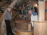“Zurück zum Ursprung” betitelte die Landeszeitung für die Lüneburger Heide einen Bericht über die Inbetriebnahme eines Steinmahlganges in der Windmühle Bardowick von 1813. Es mag antiquiert anmuten, im High-Tech-Zeitalter ein Arbeitsgerät zur gewerblichen Nutzung in einer Mühle einzurichten, dessen Ursprünge in antiker Zeit zu suchen sind und dessen Bedeutung bereits im Alten Testament eindrucksvoll formuliert wurde (5. Buch Mose, Kap.24,Vers 6). Seit der römische Ingenieur Vitruvius Pollio um 20 v. Chr. erstmals das Funktionsprinzip eines durch ein Wasserrad angetriebenen Steinmahlganges beschrieb und zeichnerisch darstellte, hat dieses Gerät wohl Detailverbesserungen, aber keinen wesentlichen technischen Wandel seiner Funktionselemente und seiner prinzipiellen Wirkungsweise erfahren. Bis 1875 war der Steinmahlgang das Hauptgerät einer Getreidemühle und wurde dann vom Walzenstuhl abgelöst. - Wohlgemerkt, die Bardowicker Windmühle ist eine Gewerbemühle, deren Mahlprodukte einen nicht unbedeutenden Beitrag zur Einkommenssicherung des Betreibers leisten. Welche Motive einen jungen Müllermeister von heute veranlassen, nicht nur aus Erwerbsgründen solch ein archaisches Arbeitsgerät in seiner Mühle zu etablieren, wurde deutlich, als am Samstag, den 1.11.03 vor einem kleinen Kreis bekannter Mühlenfreunde der neue Steinmahlgang an den Wind ging.- Mühlenbesitzer Eckhard Meyer betonte in seiner Begrüßung, dass die Mehlproduktion heute auch anders geht, es sei ihm aber wichtig, die traditionelle Steinmahltechnik unter Ausnutzung der Windkraft in seiner Mühle lebendig zu halten. Nachdem bereits seit 1998 für die Herstellung von Futterschrot ein windgetriebener Steinmahlgang in der Mühle läuft, soll mit dem neuen Mahlgang Roggen und Weizen und später auch Dinkel und Buchweizen zu Backschrot vermahlen werden. Er ist überzeugt, solche mit Naturkraft produzierten Nahrungsmittel vermarkten zu können. - Für den Vorsitzenden des Mühlenförderverein Lüneburg e.V., Müllermeister Andreas Engel, ist besonders wertvoll, dass mit diesem Gerät die historische Mahltechnik in der Gewerbemüllerei erhalten bleibt und heutigen und kommenden Generationen anschaulich vorgeführt werden kann. Der Windmühlenverein Bardowick e.V. hat diese Maßnahme nicht nur finanziell gefördert, sondern gemäß seinen satzungsmäßigen Vereinszielen auch ideell unterstützt. Der Vorsitzende Dr. Michael Epkenhans betonte, dass damit ein wichtiger Schritt zum Originalzustand der Bardowicker Windmühle vollzogen sei. - Nach einem etwa einstündigen erfolgreichen Probelauf wurde der Mahlgang wieder aus dem Wind genommen, um noch einige Restarbeiten zu erledigen. Eine willkommene Gelegenheit für die Gäste, das neue Buch des anwesenden Autors Uwe Karstens ein erstes Mal zu durchblättern und gute Gespräche unter Mühlenkennern zu führen. |