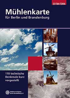 In der Mitte des 19. Jahrhunderts gab es in der Provinz Brandenburg noch mehr als 5.000 Mühlen. Der Archivbestand weist heute noch 900 belegbare Mühlenstandorte in der Region zwischen Prignitz und Niederlausitz aus. Die Mühlenvereinigung Berlin-Brandenburg e.V. hat gemeinsam mit dem Verlag Edition Terra zum “Tag des offenen Denkmals” am 11.9.05 eine Mühlenkarte heraus gebracht, die 119 ausgewählte Standorte vorstellt. Interessierte Mühlentouristen sollen auf die einst reichhaltige Mühlenlandschaft dieser Region hingewiesen und zum Besuch noch vorhandener Zeugen angeregt werden. Auf einer großformatigen Landkarte erscheinen die Standorte mit Symbolen, die die unterschiedlichen Mühlentypen kennzeichnen, in Begleittexten nebst Kontaktdaten werden die Standorte und deren Zugänglichkeit beschrieben. Informative Erläuterun- gen vermitteln dem Leser in Text und Bild Wissens- wertes zu den verschiedenen Sachthemen des Mühlenwesens wie Typologie und Konstruktion, Getreidevermahlung, Mülleralltag, Mühlen in Literatur und Volkslied. Als besonders interessant werden 16 Mühlenstand- orte empfohlen, darunter der Neubau einer Bock- windmühle in Berlin / Alt Marzahn, die bekannte Straupitzer Dreifach-Mühle (Öl-, Säge- und Getreidemühle), die berühmte Mühle von Sanssouci und als mühlentechnisches Novum die Scheunen- windmühle in Saalow, bei der durch Öffnen der Scheunentore ein “Luftdurchzug” (!) entsteht, der ein Windrad in Drehung versetzt und damit über ein Kammrad die Mahlgeräte antreibt. Als ein in deutschen Mühlenregionen sehr seltenes und deshalb überfälliges Angebot wird dem Mühlentouristen auch die Möglichkeit offeriert, mit dem Besuch der beiden Industriemühlen in Müllrose und Bensdorf neuzeitliche Produktionsmethoden und damit die Entwicklungsschritte von historischer zu moderner Betriebsweise zu erleben.