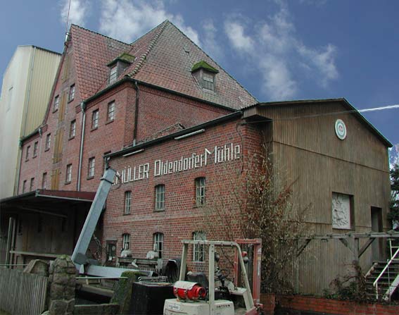 Dass sich uralte Handwerkstradition und Innovationen nicht ausschließen, beweist die Oldendorfer Mühle eindrucksvoll in der vierten Generation (seit 1886). Wegen des umkämpften Marktes war Spezialisierung auf hochwertige Vollkorn- und Spezialprodukte das Gebot der Stunde. Dem Verbraucher verpflichtet, investierte man stark in umweltfreundliche Zukunftstechnik. Seit 1994 wird durch aufwendige Fotoauslese ein 100 %iger Reinheitsgrad des Getreides erreicht. Moderne Steuerungen überwachen die altbewährte Müllereeitechnik und immer noch erzeugen zwei Wasserturbinen einen Teil der benötigten Energie. Dank der Fotoauslese hat sich der Umsatz nahezu verdreifacht - mit allen Konsequenzen ! So wurden im Jahr 2000 täglich 50 to Roggen zu Mehlen und Spezialschroten für die Brotindustrie und kleine Haushalte verarbeitet und verteilt. Diese Aufgaben bewältigen 4 Vollzeitkräfte (3 Fahrer und 1 Müller) und 2 Halbtagskräfte im Büro. Nötig wurden viele Umbauten, einige Neubauten und Investitionen vor allem Logistik. Seit 1998 können wieder Feinmehle mit der neu installierten Feinmüllerei hergestellt werden. Der Weg zu immer neuen Nischenprodukten muß die Zukunft des Betriebes sichern - Lebensmittel als Massengut sind nichts mehr wert und zum Ramschartikel in den Supermärkten geworden ! Seit Generationen ist die Landwirtschaft ein eigenständiger Betriebszweig des Oldendorfer Mühlenhofes gewesen. Heute im Jahr 2001 werden 68 ha landwirtschaftliche Nutzfläche quasi „nebenbei" bewirtschaftet. Auf den Flächen wird überwiegend Roggen als Brotroggen angebaut, aber auch Erbsen als Eiweißträger für das Viehfutter und Buchweizen zur Veredelung zu Buchweizenmehl, welches Grundstoff der Buchweizentorten in den umliegenden Cafes ist. Auf dem Grünland werden über Sommer bis Weihnachten viele Gänse gehalten. In den Ställen werden 300 bis 400 Schweine nach artgerechten und umweltschonenden Richtlinien gemästet. Das Programm nennt sich NEULAND. Zum Hof gehören 25 ha Wald, wovon 5 ha um die Oldendorfer Totenstatt - eine bronzezeitliche Grabanlage - herum an den Landkreis Lüneburg verpachtet sind, der aus diesem Areal eine Touristenattraktion mit wunderschöner Heidefläche geschaffen hat. Alles dieses kann man am Deutschen Mühlentag - jedes Jahr Pfingstmontag - in Oldendorf besichtigen, es sollen die Türen offen stehen.(von Andreas Engel)