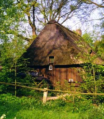 Tief hinter dem Damm des Mühlenteiches duckt sich die alte reetgedeckte Ovelgönner Wassermühle und bietet mit der sie umgebenden Landschaft das reizvolle Bild einer romantischen Mühle, wie es so recht unseren Vorstellungen entspricht. – Über der Eingangstür gibt die Inschrift „M.Detlef. Schwar. Anno 1674“ Auskunft über den Erbauer und das Baujahr. Die relativ kleine Mühle war nur mit einem Mahlgang ausgerüstet, der von dem in einem Mühlenteich gestauten Wasser der Ketzenbeek über ein oberschlächtiges Wasserrad angetrieben wurde. Die bescheidene mahltechnische Ausstattung und das auf nur drei Tage je Woche beschränkte Wasserangebot des Mühlenbaches verhinderten, daß die Mühle im Verlauf ihrer Nutzung eine besondere wirtschaftliche Bedeutung erlangen konnte. Sie ist eher als ein Nebenbetrieb der meist vom gleichen Pächter betriebenen Moisburger Mühle anzusehen. Die Mühle ging wohl Ende des 17. Jahrhunderts in den Besitz des Amtes Moisburg über und erlebte danach häufige Pächterwechsel bis sie im Jahre 1827 in den Besitz der Familie Peters kam und über 100 Jahre in deren Eigentum verblieb. Schon früh verlor sie gegen Ende des 19. Jahrhunderts den Konkurrenzkampf gegen die aufkommenden großen Handelsmühlen und zu Beginn des 20. Jahrhunderts mahlte sie nur noch für den Eigenbedarf des Besitzers. Zwischen den beiden Weltkriegen wurde hin und wieder noch geschrotet und über eine an das Mühlengetriebe gekoppelte Eisenwelle eine Dreschmaschine betrieben. Die in den folgenden Jahrzehnten stark verfallende Mühle kam 1985 in den Besitz der Stadt Buxtehude, die mit Hilfe der Fachhochschule Nordostniedersachsen und des Verein Ovelgönner Wassermühle e.V. eine umfassende Restaurierung der Mühle bis zur vollen Funktionsfähigkeit durchführte. Die alte Wassermühle in Ovelgönne ist heute eine bekannte touristische Attraktion und als Dorfgemeinschaftsraum ein beliebter Treffpunkt des dörflichen Lebens.