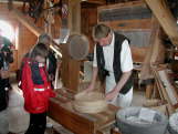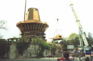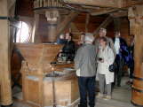 Während die Bauarbeiten am Mühlenstumpf sowie der Neubau der Galerie mit ihren für diese Mühle so charakteristischen 32 Schoren (Schrägstützen der Galerie) durch örtliche Handwerksfirmen erfolgten, ging der Auftrag für den Neubau des hölzernen Mühlen-Achtkantes mit Kappe und Flügeln an die Firma Wilhelm Möller in Rahden-Tonnenheide (Nordrhein-Westfalen). Die Flügelruten sind aus Stahl und wurden in den Niederlanden gefertigt. Die Flucht (Flügeldurchmesser) beträgt bei dieser Mühle 24 Meter. Den technischen Innenausbau mit zwei Steingängen und Sechskantsichter übernahm der Mühlen-Bauhof des Kreises Minden-Lübbecke (NRW). - Nach Abschluss aller Arbeiten übernahm die Deutsche Gesellschaft für Mühlenkunde und Mühlenerhaltung (DGM) e.V. die Betreuung und den Betrieb der Historischen Mühle als Museum von der Schlösserstiftung, die Eigentümer ist. Seit 1995 betreibt die Mühlenvereinigung Berlin-Brandenburg e.V. im Auftrag der DGM die Mühle und bemüht sich seither, die museale und technische Ausstattung den sich verändernden Erfordernissen an zu passen. Als Museumsmühle an einem prädestinierten Standort verzeichnet die Historische Mühle von Sanssouci inzwischen jährlich eine Besucherzahl von etwa 60.000. Eine ehrenamtliche Betreuung der Mühle ist auf Grund der örtlichen Gegebenheiten nicht umsetzbar. So sind die Betreiber gezwungen, Betriebskonzepte zu entwickeln, die für eine gesunde finanzielle Grundlage sorgen. Hier heißt das in erster Linie: Einnahmen durch Eintrittsgelder, Spenden, Führungen, Verkauf von Andenken und Mühlenartikeln. Gleichzeitig ist die Attraktivität der Mühle den heutigen Ansprüchen an einen (technischen) Museums-Betrieb an zu passen. |