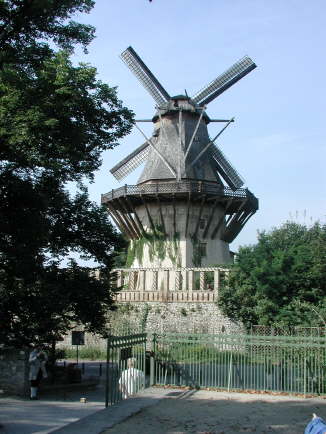 Die wiederaufgebaute Sanssouci - Mühle an der Maulbeerallee. Seit 1993 zeigt sie wieder ihr historisches Erscheinungsbild und den Fotografen aus aller Welt eines der schönsten Mühlenmotive.