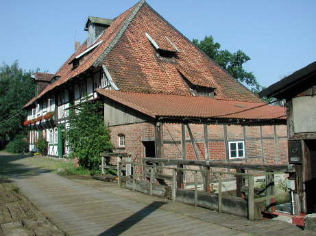 Das 1587 erbaute und 1757 renovierte Wohnhaus der Mühle, erkennbar an dem vorkragenden, knaggengestützten Obergeschoss und die anschließende Mehlmühle mit Radstube. Im Jahre 1975 - 1980 war der Bestand der Mühle nochmals stark gefährdet. Vom Nachbarort Walle führte über den Mühlenhof eine historisch gewachsene Verbindungsstrasse nach Schwülper. Früher hat der rein landwirtschaftliche Verkehr den Mühlenbetrieb niemals ernsthaft gefährdet, mit dem Strukturwandel nach dem 2. Weltkrieg und der Zunahme der Berufspendler wuchs der Verkehr so stark an, dass bis zu 100 Autos je Tag über das Kopfsteinpflaster des Mühlenhofes rollten. Man plante durch Teilabbruch einer Scheune und durch Umfunktionierung des Mühlenhofes eine verkehrsgerechte Lösung. Dies hätte infolge fehlender Wirtschaftsflächen den sicheren Tod der Mühle bedeutet. Die Gemeinde erkannte dieses Risiko und baute 1982 eine Umgehungsstrasse. Der Mühlenhof ist heute frei von jeglichem Fremdverkehr.