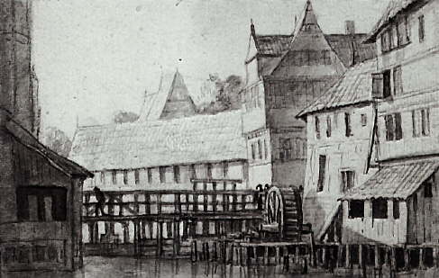 Anthonie Waterloo - um 1660 Die Kornmühle an der Graskellerbrücke - “ Een koremole binne hamburgh”