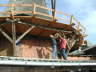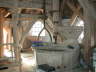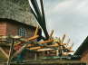 In den letzten Jahren sah die 1986 stillgelegte Kampener Windmühle etwas zerzaust aus - die Galerie verfiel zusehends, die Jalousiebretter der Flügel mussten entfernt werden und an der Reeteindeckung zeigten sich zunehmend Schäden. Doch Kleeberg´s Empfehlung von 1964 geriet nicht in Vergessenheit. Der heutige Besitzer Helmut Blanck (41), als Müller bei Andreas Engel auf der Oldenburger Wassermühle (Ldk. Lüneburg) tätig, entschloss sich gemeinsam mit dem 2001 gegründeten Windmühlenverein Kampen e.V. zu einer schrittweisen Sanierung der Mühle. Umfang und Zeitraum der einzelnen Abschnitte wird dabei durch die jeweilige Finanzlage des Vereins bestimmt, der die Trägerschaft inkl. der Kosten für die Gesamtaktion übernommen hat. Zwischen dem Verein und dem Eigentümer wurde dazu ein Nutzungsvertrag abgeschlossen, der die Rechte und Pflichten der Vertragspartner regelt. - Im September d.J. wurde der erste Sanierungsabschnitt mit der teilweisen Erneuerung der Galerie begonnen. Die Arbeiten wurden in Eigenregie durch Vereinsmitglieder ausgeführt, das benötigte Eichenholz spendierten einige Bauern des Ortes und der Zuschnitt konnte kostengünstig vergeben werden. Inzwischen ist die Galerie bis auf einige Restarbeiten wiederhergestellt und auch die Schadstellen in der Reeteindeckung wurden fachgerecht ausgebessert.