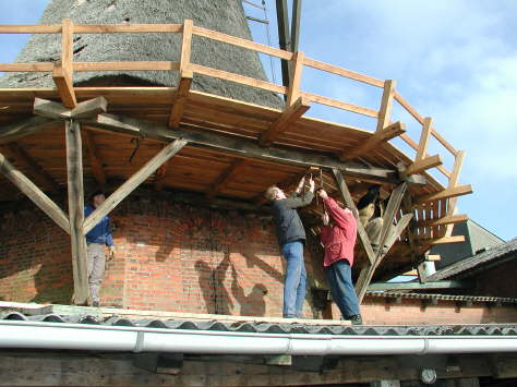 Der Bau einer Galerie bietet für handwerklich geübte Vereinsmitglieder ein ideales Aktionsfeld. Hier kann Eigenleistung zu deutlichen Kosteneinsparungen führen. Seit September bis Ende November 03 trafen sich jeweils samstags 10-12 freiwillige Helfer und “legten Hand” an die Mühle.