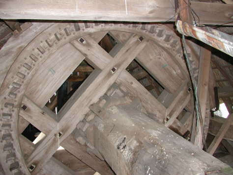 Kammrad und hölzerne Flügelwelle in der Drehkappe, haben sich seit 8 Jahren nicht mehr gedreht. Die ca. 15 to schwere Kappe hat sich in dieser Zeit auf der Gleitfläche so “festgefressen”, dass der Haftwiderstand nicht bruchfrei mit dem Steert überwunden werden kann. Ein Anheben der Kappe mittels schwerem Autokran oder hydraulischen Pressen wird erforderlich. - Viel Glück dazu!