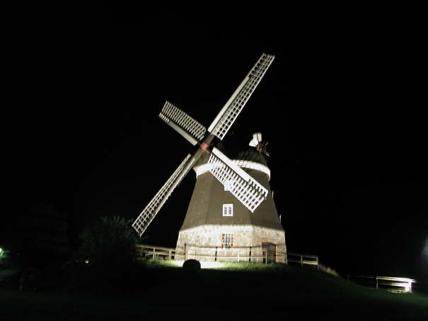 Mit dieser Nachtaufnahme von Otto Budde´s Mühle endet dieser Bericht über die Woldegker Mühlenlandschaft. Der Verfasser bedankt sich bei Roland Stapel und Axel Fischer für die freundliche Aufnahme anlässlich seines Besuches am 31.April d.J. auf dem Mühlenberg, sowie für die ausführlichen Erläuterungen und die Beschaffung schriftlicher Materialien zur Vorbereitung dieses Berichtes und sagt den Woldegker Mühlenfreunden ein herzliches “Glück zu” für ihre Bemühungen um die Pflege und Erhaltung eines wertvollen deutschen Kulturschatzes.