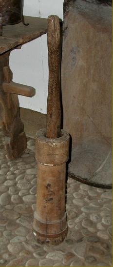 Handdrehmühle auf der Diele und ............... .......... eine Hirsestampfe im Flett des Brümmerhofes.