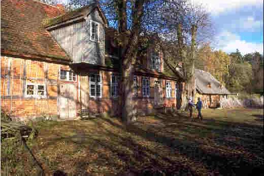Die Wassermühle liegt im Nordwestzipfel des Naturparkes Mecklenburgisches Elbetal (in Mecklenburg-Vorpom- mern) zwischen den Orten Vellahn und Brahlstorf an der nordsüdlichen Verbindungsstraße von Vellahn (an der Bundesstraße 5) nach Neuhaus (Amt Neuhaus, Kreis Lüneburg, Niedersachsen). Idyllische Lage am rechtwinkligen Zusammenfluß zweier Bäche westlich der Straße in einem Wald. (Am Bach, der von Osten einmündet, jenseits der Straße weiter östlich auch eine Wassermühle.) Jene Wassermühle, die 1610 wohl erstmals erwähnt wird, fiel der Zerstörung im Dreißigjährigen Krieg anheim, wurde aber wiedererrichtet. Erneuerungen waren 1772 notwendig, wie auch später bauliche Veränderungen folgten. Das heutige Erscheinungsbild des eingeschossigen Fachwerkbaus mit Krüppelwalmdach mag auf die Zeit um 1840 zurückgehen. Man ersetzte das mittelschlächtige Wasserrad 1880 durch eine Turbine, und erst 1965 wurde der Turbinenantrieb eingestellt, nachdem man bereits vorher einen Dieselmotor, dann einen Elektromotor genutzt hatte. Die Stillegung der Mühle erfolgte zu Beginn der siebziger Jahre des 20. Jahrhunderts, ohne daß die gut erhaltene technische Einrichtung mit Teilen sogar aus dem 17. Jahrhundert zu Schaden kam. Im Jahre 1984 wurde die Bruchmühle zur „Kulturmühle": Es werden historische Postkutschenfahrten veranstaltet, deren Teilnehmer eine „Mühlen"- Posthalterei des Biedermeier erleben können. Künstler, Kunsthandwerker und Schriftsteller arbeiten in einem Gastatelier. Man kann in der Bruchmühle ebenso Seminare abhalten wie auf Ausflügen mit Verwandten und Freunden feiern.